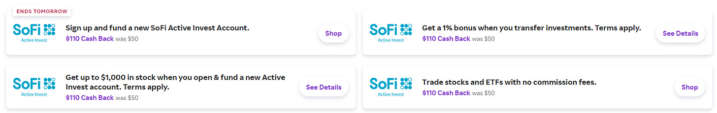 If you don’t execute the order of operations precisely, you won’t max out sign up bonuses from both SoFi and Rakuten. Neither platform emphasizes that they are stackable but they are. These offers are probably as good as they’re going to get and might go back down (the Rakuten $375 number is the least permanent).