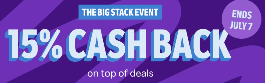 Today they’re offering an additional 15% cash back on top of their normal deals: